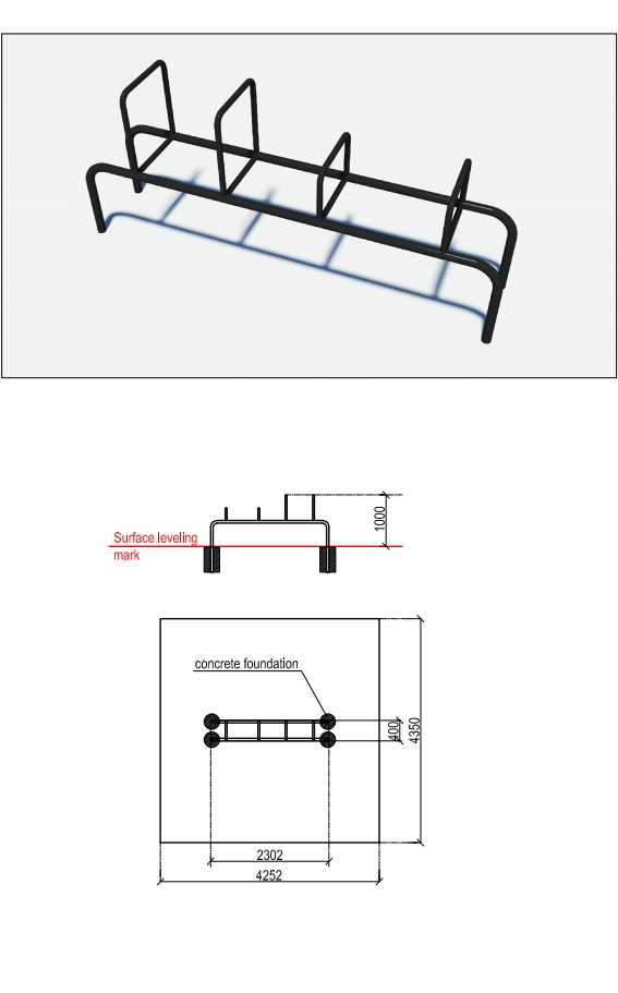 • -Конструкция имеет четыре полукольца с расстояниями 600 мм, 500 мм и 500 мм между собой.