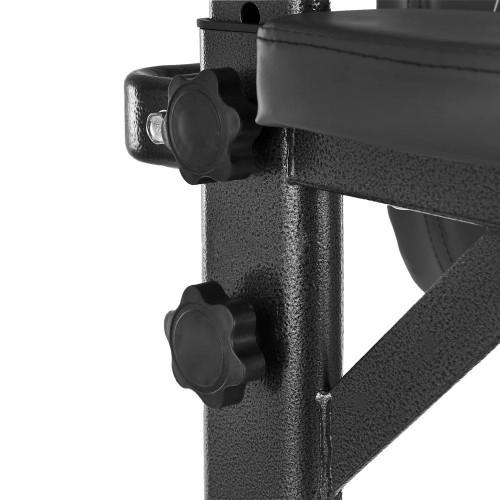 Спинка и специальные упоры для локтей дополнены двумя вертикальными рукоятками для максимального комфорта выполнения упражнений для пресса.